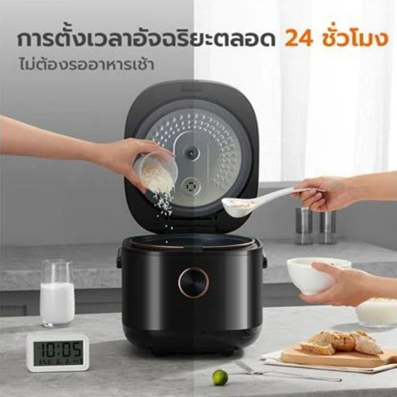 ใช้งานง่าย แผงควบคุมอยู่ด้านบน ไม่ต้องก้มใช้งาน รองรับการตั้งเวลาล่วงหน้าอัจฉริยะ 24 ชั่วโมง ตั้งค่าตอนกลางคืน ตื่นเช้าได้พักผ่อนนานขึ้น มีหูจับสำหรับยกขึ้นโต๊ะ เปิดฝาได้ด้วยปุ่มเดียว ตัวหม้อมั่นคง ไม่เอียง ไม่สั่น