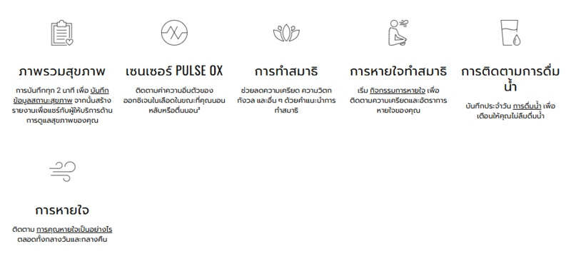 ตรวจสอบความอิ่มตัวของออกซิเจนในเลือด: รองรับ ตรวจสอบเฉพาะจุด และสามารถเลือกได้ตลอดวัน รวมถึงขณะนอนหลับ