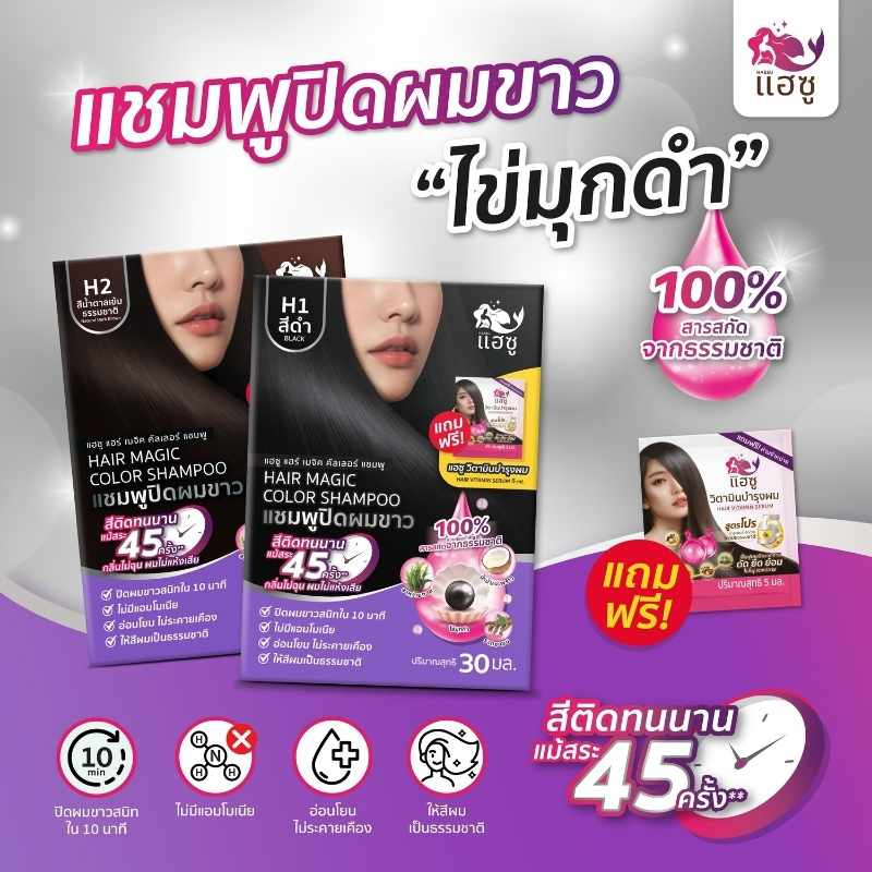 2. ชโลมแชมพูลงบนเส้นผมที่หมาด นวดเน้นตรงบริเวณที่มีผมขาวและนวดให้เกิดฟองทั่วทั้งศีรษะ