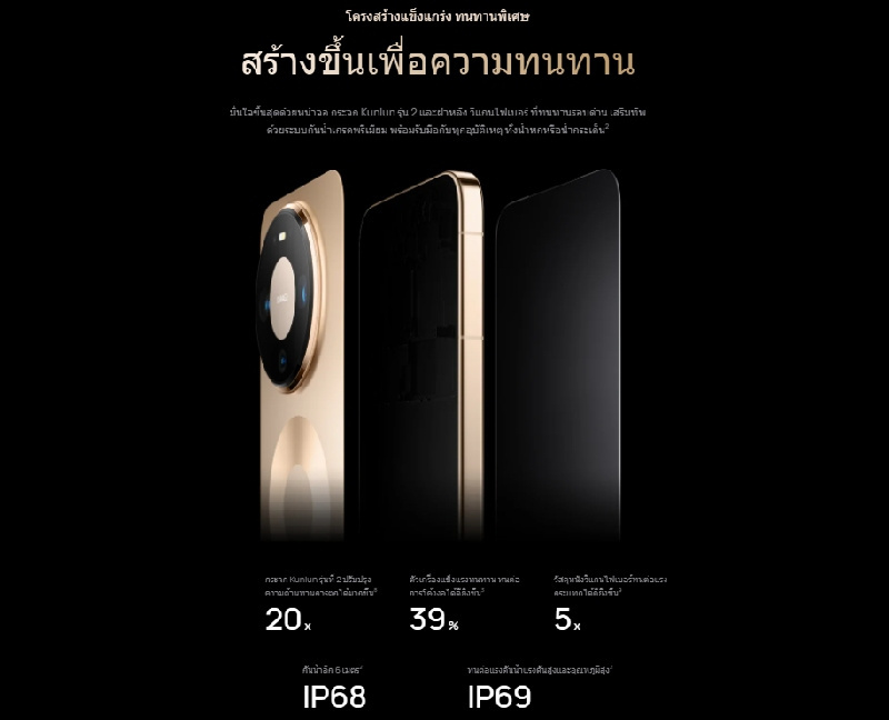 *ระดับ IP68 หมายความว่าตามเงื่อนไขการทดสอบที่กําหนด อุปกรณ์จะได้รับการปกป้องจากน้ำสถิตที่เป็นอันตรายที่สูงถึง 2 เมตร เป็นเวลาสูงสุด 30 นาที ในขณะที่ความแตกต่างของอุณหภูมิระหว่างน้ำกับอุปกรณ์ไม่เกิน 5 องศาเซลเซียส
