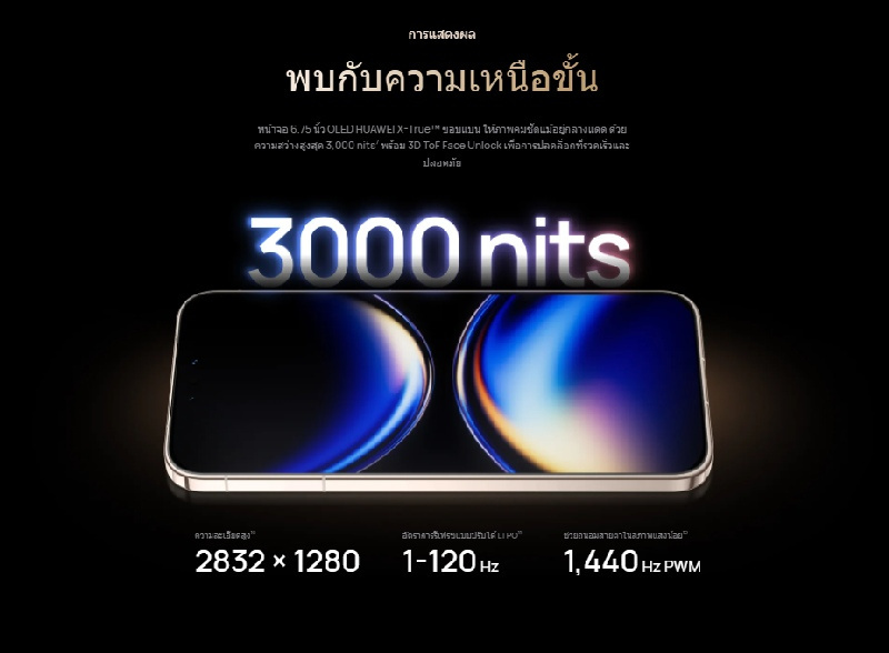 LTPO OLED, อัตราการรีเฟรชไดนามิกสูงแบบปรับได้ 1-120 Hz, การลดแสง PWM ความถี่สูง 1,440 Hz, ความเร็วในการตอบสนองต่อการกดของหน้าจอ 300 Hz