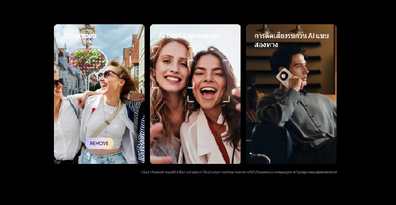 AI ภาพเคลื่อนไหว, เซลฟี่แบบเคลื่อนไหวช้า, ภาพบุคคล, ไทม์แลปส์, ฟิลเตอร์, สติกเกอร์, จับภาพรอยยิ้ม, การสะท้อนกระจก, การควบคุมเสียง, ตัวจับเวลา