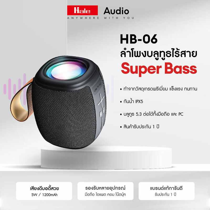 HALE HB-06 เป็นลำโพงไร้สายสเตอริโอ ดีไซน์สวยงาม ให้คุณภาพเสียงที่ชัดเจนและทรงพลัง