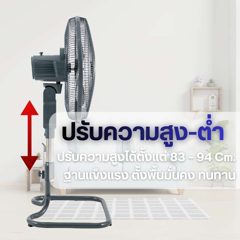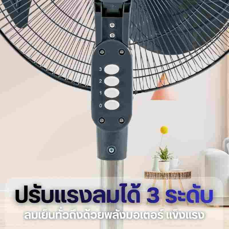 สามารถปรับความแรงลมได้ 3 ระดับ พร้อมระบบ Thermal Fuse ช่วยป้องกันมอเตอร์ไหม้เมื่อใช้งานต่อเนื่องยาวนาน เพิ่มความปลอดภัยและความมั่นใจในการใช้งาน ใช้กำลังไฟ 70 วัตต์ ให้ลมแรงเต็มประสิทธิภาพ