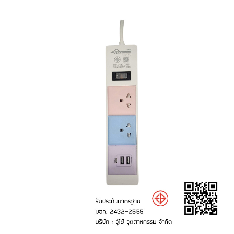 ปลั๊กไฟ 2 ช่อง 1 สวิตช์ พร้อมช่อง USB 2 ช่อง 1 TYPE C รองรับการชาร์จอุปกรณ์