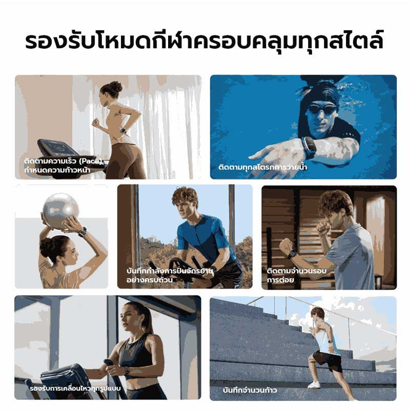 - รองรับโหมดกีฬาครอบคลุมทุกสไตล์ทั้งกีฬากลางแจ้ง และในร่ม