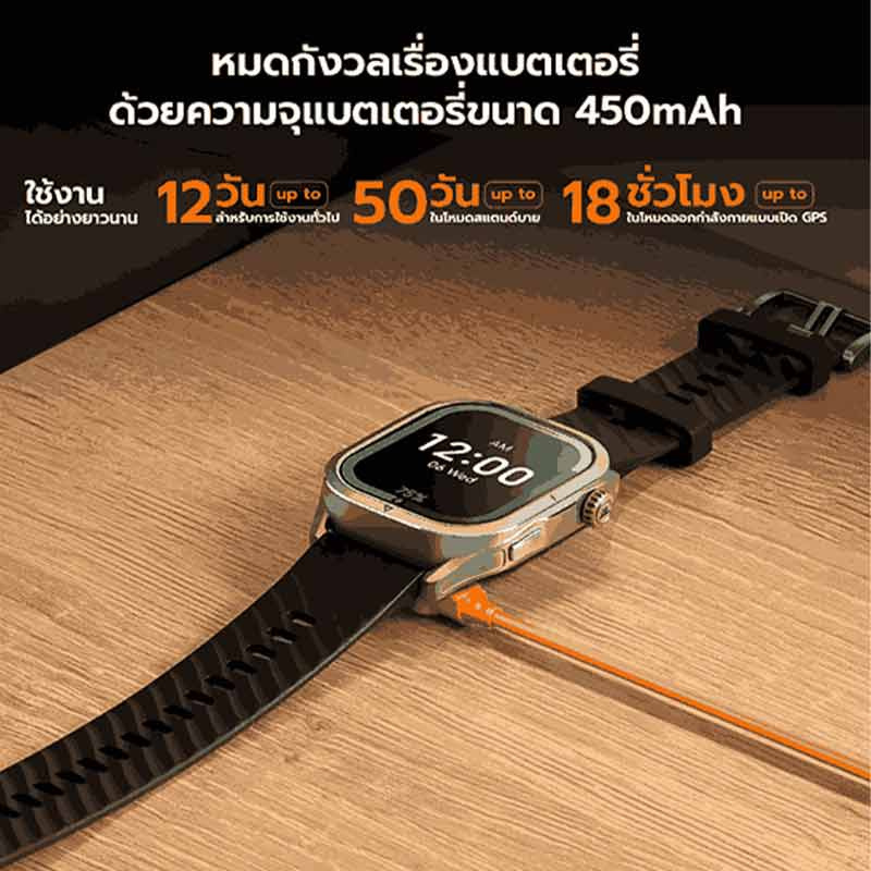 - 18 ชั่วโมง ในโหมดออกกำลังกายแบบเปิด GPS