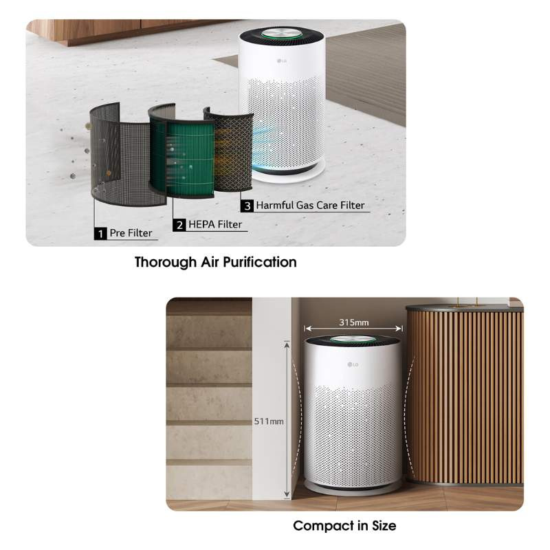 ประสิทธิภาพการกรองขั้นสูง : ระบบกรองหลายชั้น ดักจับและกำจัดอนุภาคที่เป็นอันตราย เช่น แบคทีเรีย, ไวรัส, ฝุ่นละเอียด (PM2.5), สารก่อภูมิแพ้, และก๊าซอันตรายในอากาศ ได้อย่างมั่นใจถึง 99.9%