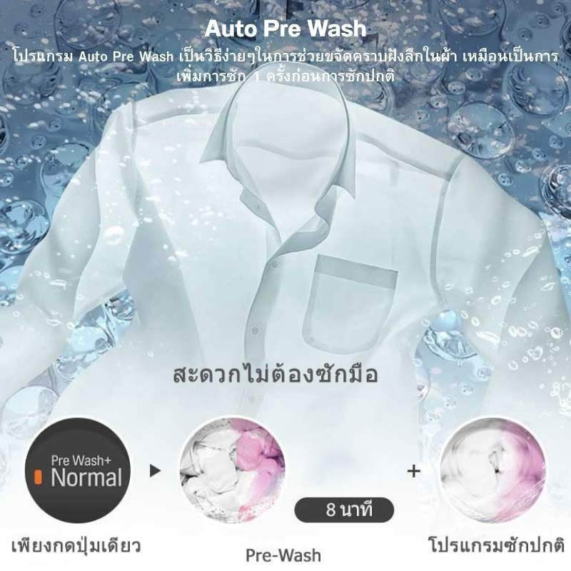 โปรแกรม Auto Pre Wash ช่วยขจัดคราบฝังลึกในผ้าก่อนการซัก ไม่ต้องเหนื่อยขยี้ผ้าก่อนซัก