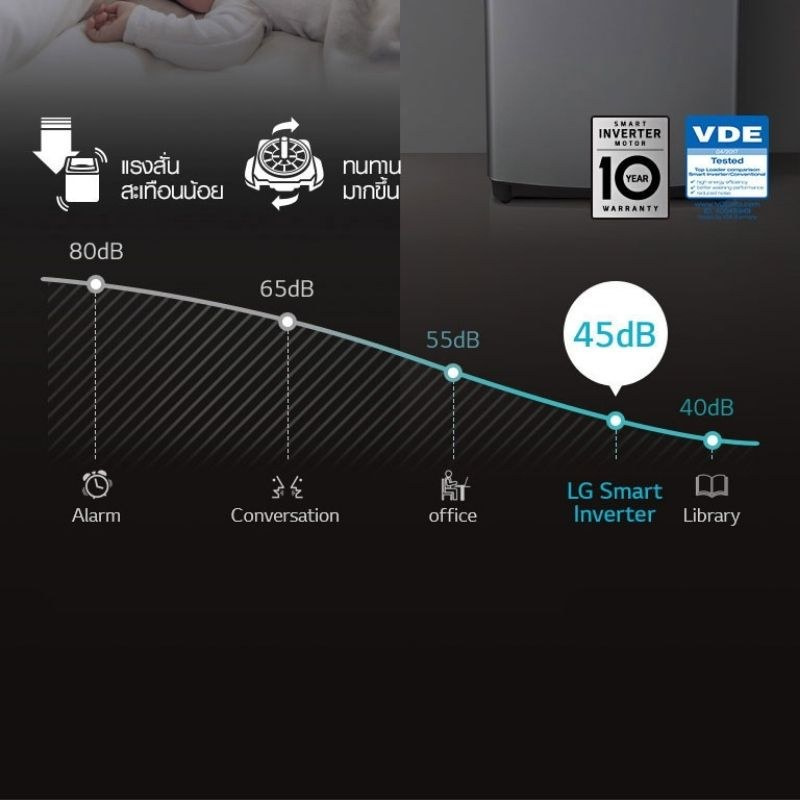 • มอเตอร์ระบบ Smart Inverter เพิ่มความทนทานทำงานเงียบลดแรงสั่นสะเทือน