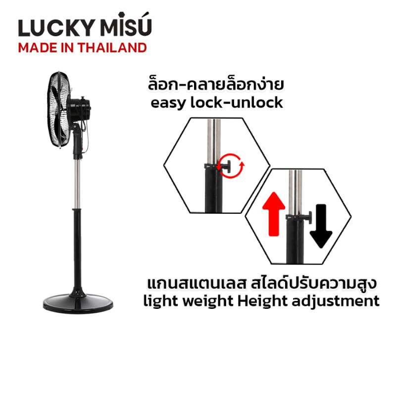 ปรับความสูงได้ง่าย มีตัวล็อกแยกจากตัวพัดลม