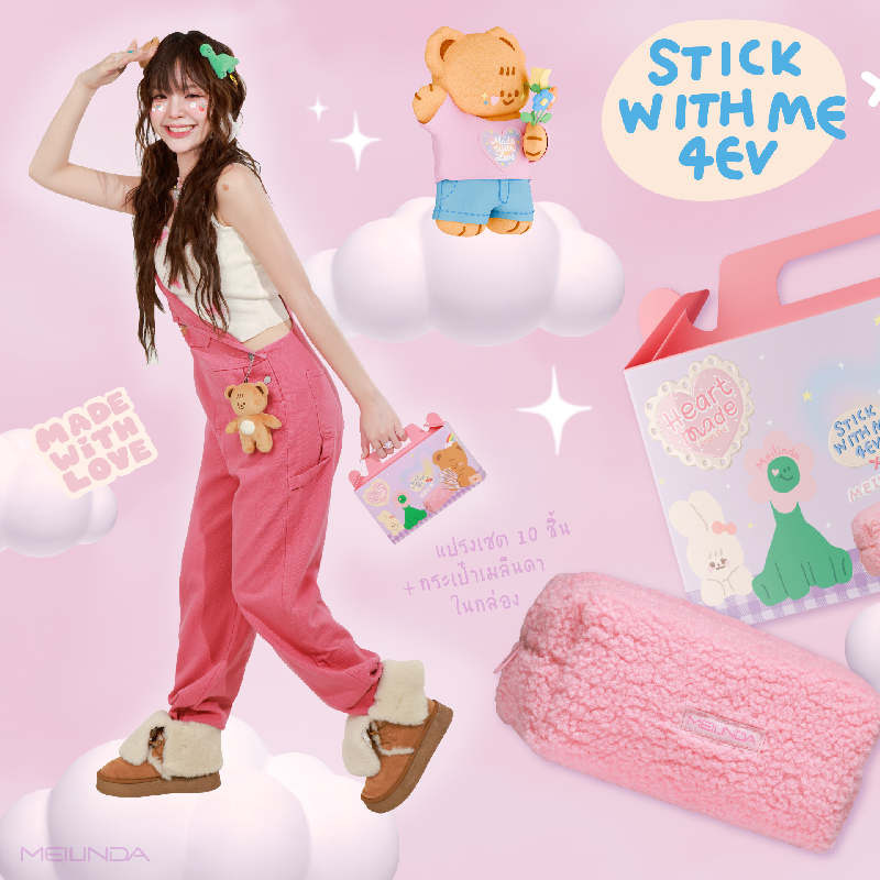 คอลเลคชั่นสุดพิเศษที่ MEILINDA ร่วมออกแบบลายการ์ตูนสุดคิ้วท์กับstickwithme4ev แปรงเซต 10 ชิ้น พร้อมกระเป๋าขนหมีสีชมพูน่ารัก ซึ่งเป็นเบอร์ที่ครอบคลุมการใช้งาน ทั้งหน้า ตา และแก้ม วัสดุของขนแปรง ขนแปรงสังเคราะห์แบบพรีเมี่ยม ทำให้ขนแปรงมีความนุ่ม และมีความแน่นสูง