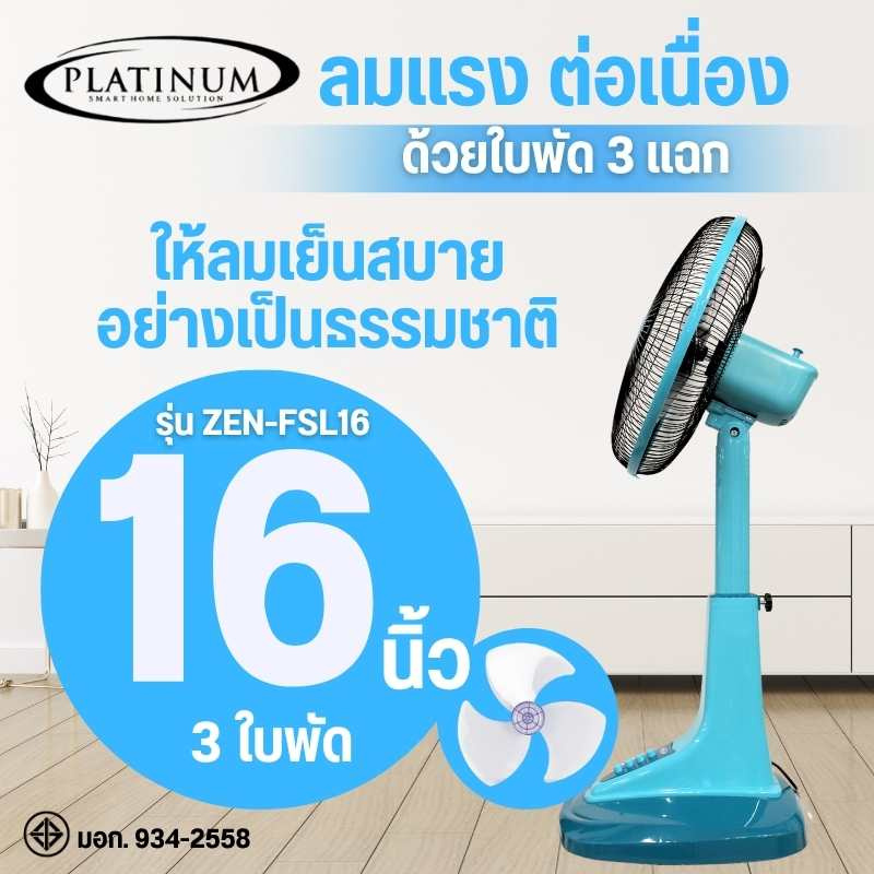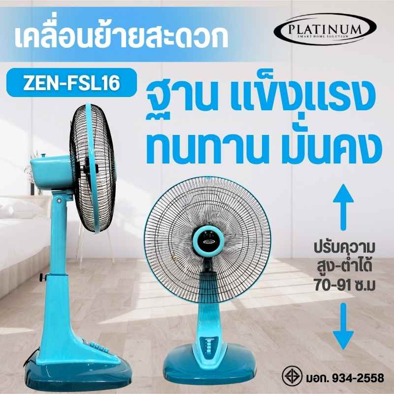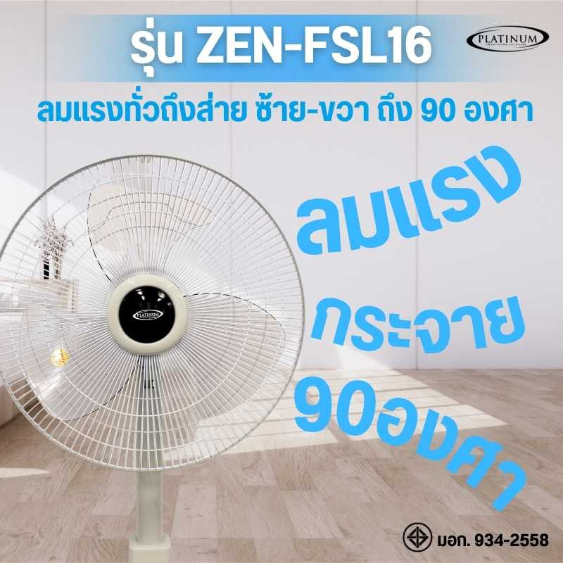 PLATINUM พัดลมตั้งพื้นสไลด์ รุ่น ZEN-FSL16 ขนาด 16 นิ้ว เย็นสบายทุกมุมห้อง ปรับได้ทุกองศา ใช้งานง่ายทุกสถานที่