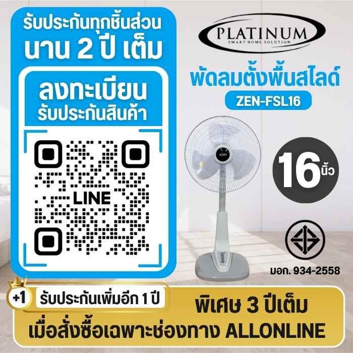 PLATINUM พัดลมตั้งพื้นสไลด์ 16 นิ้ว รุ่น ZEN-FSL16 | AllOnline
