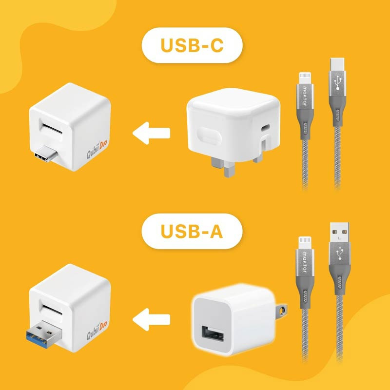 1. สำรองข้อมูลได้อัตโนมัติขณะที่ชาร์จ - ช่วยให้คุณสำรองรูปภาพ วิดีโอ ไฟล์เสียง และข้อมูลได้อย่างง่ายดาย เพิ่มพื้นที่ว่างบน iPhone และ Android ของคุณ เพียงแค่เสียบ Qubii Duo เข้ากับหัวชาร์จ