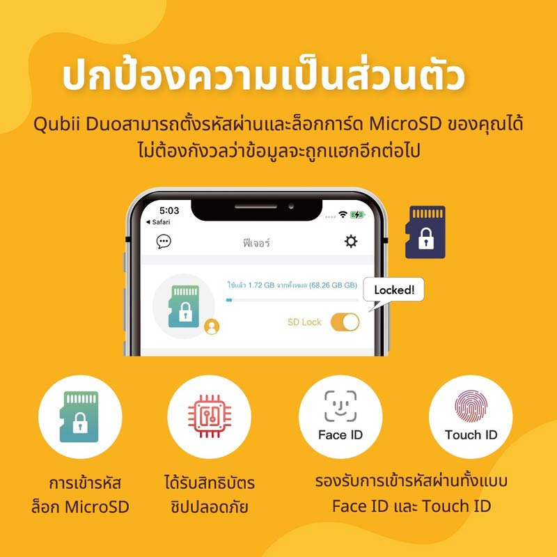 หมายเหตุ: โปรดใช้ Qubii Duo คู่กับ การ์ด MicroSD ของแท้เท่านั้น