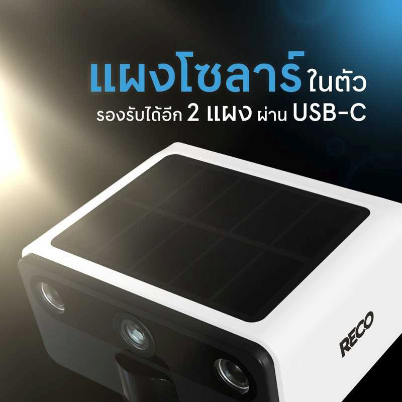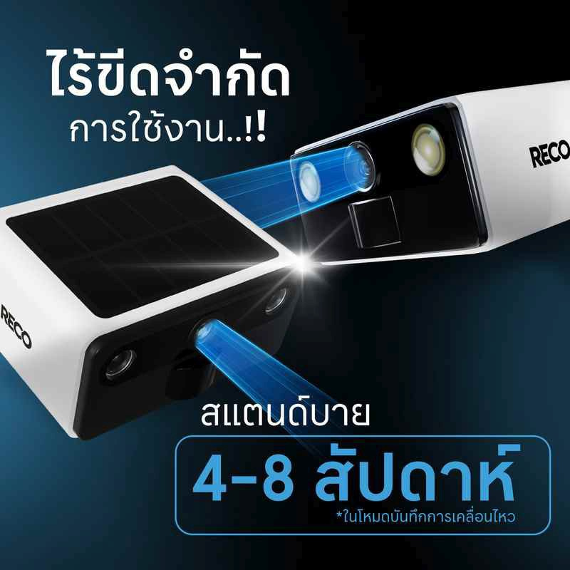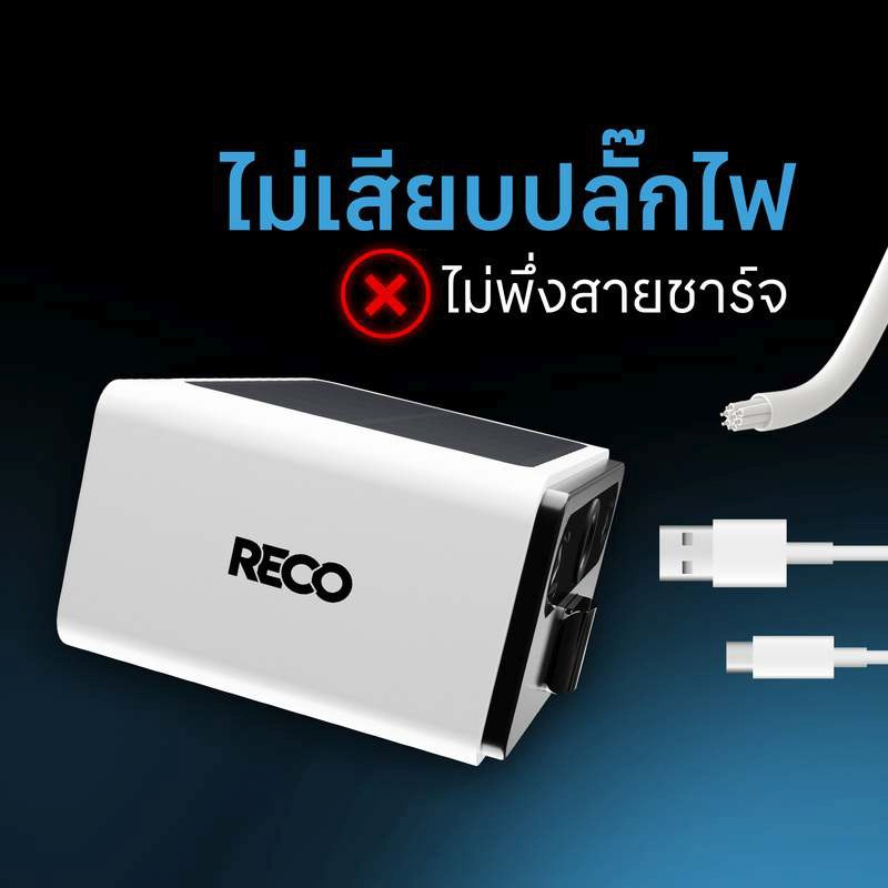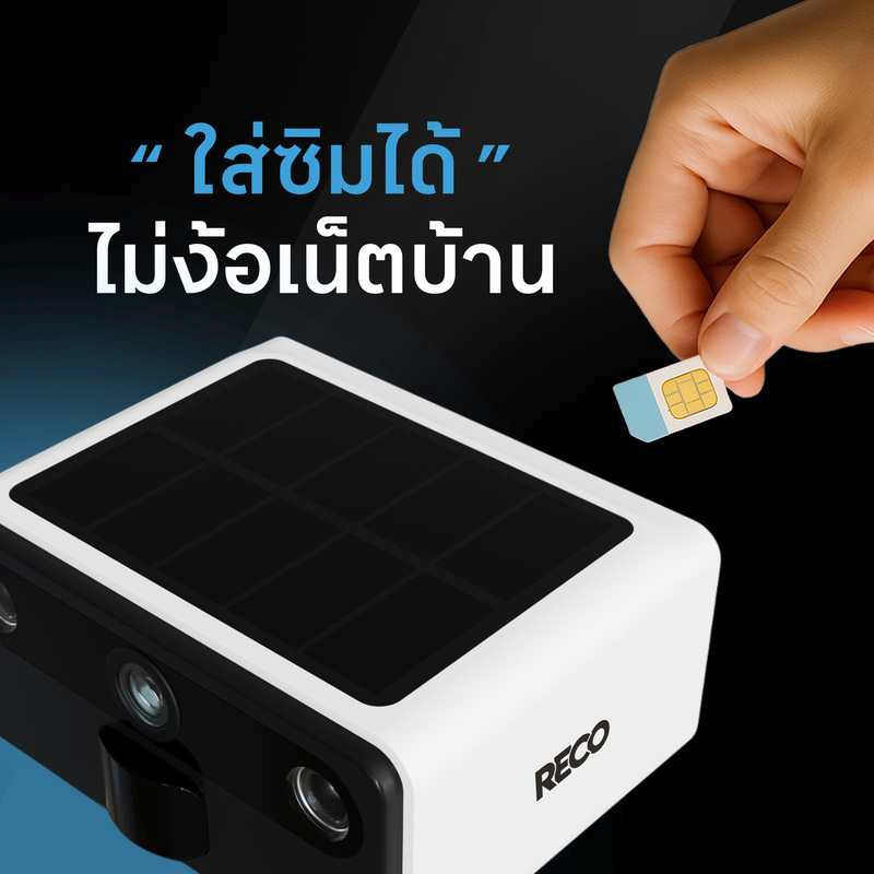RECO รุ่น 4G SOLAR (รีโค่ รุ่น สี่จี โซลาร์) เป็นกล้องวงจรปิดไร้สายใส่ซิม แบตในตัว
