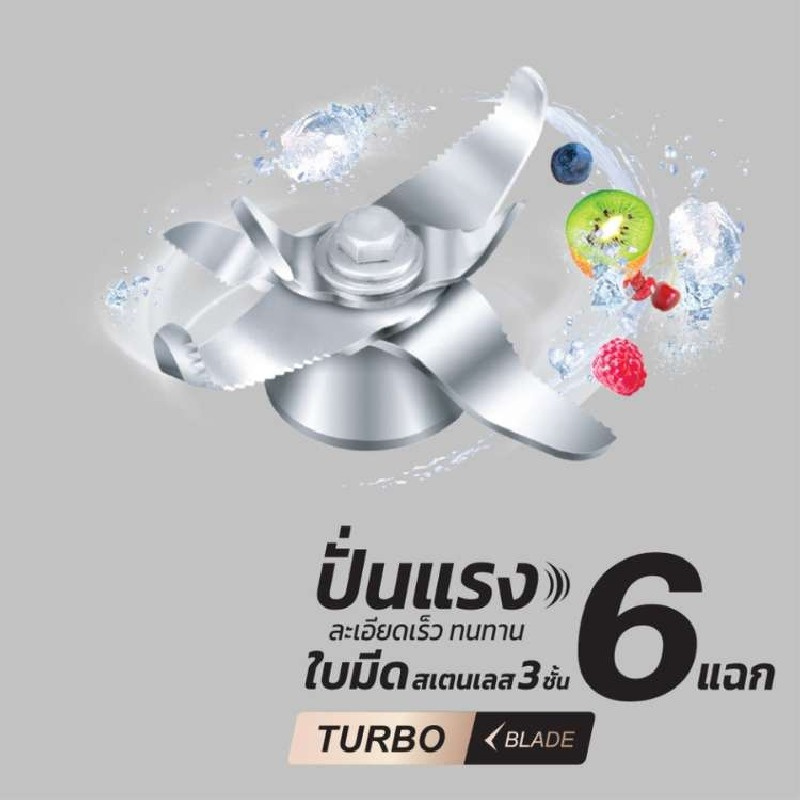 - TURBO BLADE ใบมีด 6 แฉก สามารถปั่นน้ำแข็งก้อนใหญ่ให้กลายเป็นสมูทตี้เนื้อเนียนละเอียดได้เร็ว ผลิตจากสเตนเลสเกรด 304 ปลอดภัยต่ออาหาร และทนทานต่อการกัดกร่อนได้ดี