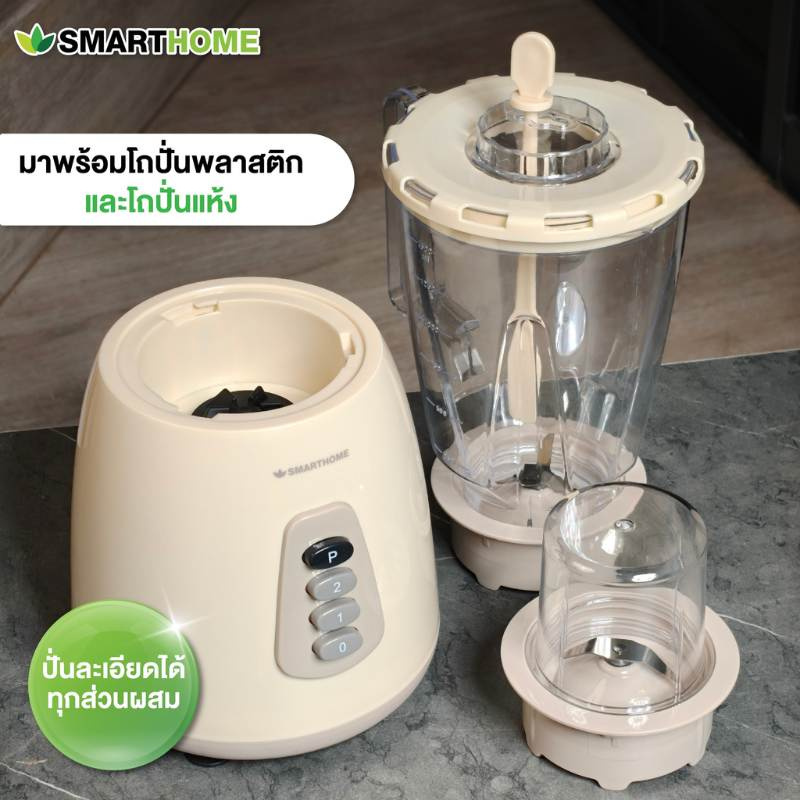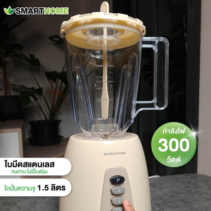 ใบมีดสแตนเลส ทนทาน ไม่เป็นสนิม ผลิตจากวัสดุคุณภาพดีที่ได้รับมาตรฐานจาก Smarthome ทนทานการใช้งานประสิทธิภาพการปั่นอันทรงพลังด้วยกำลังมอเตอร์ 300 วัตต์ ใช้งานง่ายกับดีไซน์ขนาดกะทัดรัด