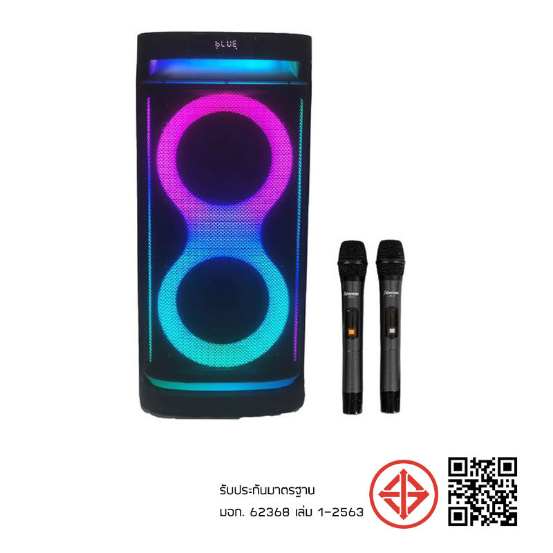 ตู้ลำโพงพร้อมขยายเสียงในตัว ดอกลำโพงขนาด 8 นิ้ว เบสคู่ กำลังขับ 70 W โดดเด่นด้วยเสียงกลางที่ชัดเจน รองรับ BT/BT Twin, USB/TF, มีแบตเตอรี่บรรจุอยู่ภายใน มีชุดล้อลากเพิ่มความสะดวกสบายในการเคลื่อนย้าย เหมาะสำหรับงาน Indoor หรือ Outdoor