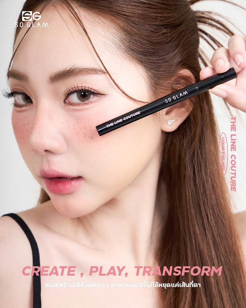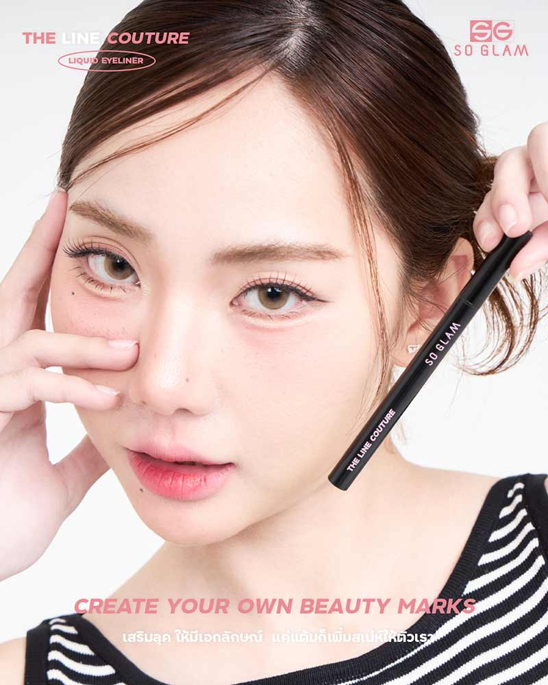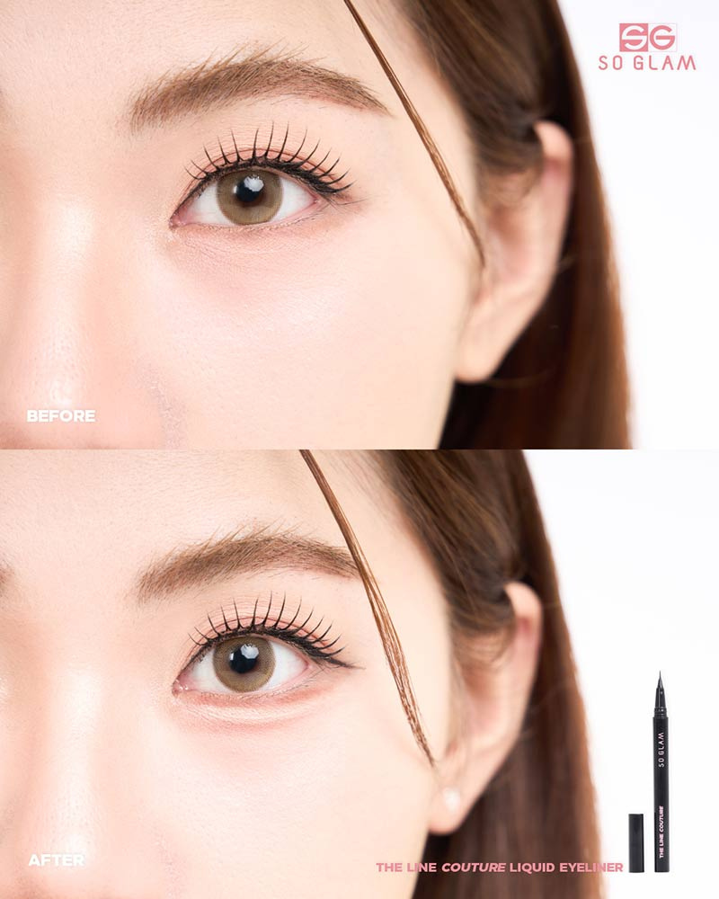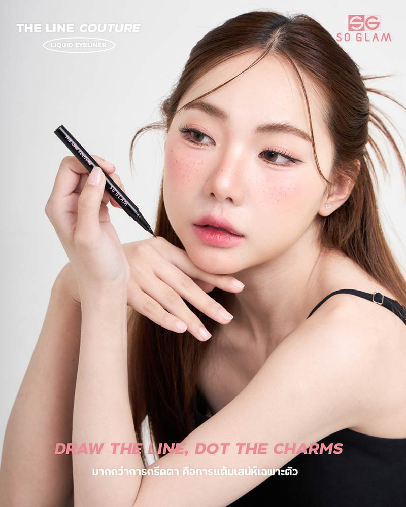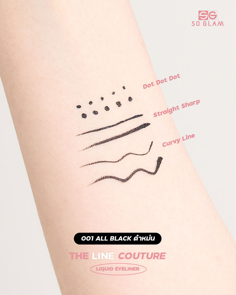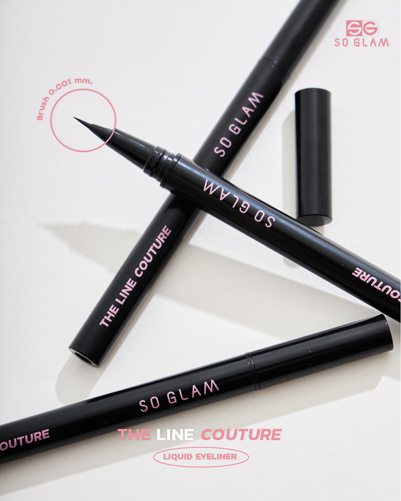 ไลน์กูตูร์ So Glam ลิควิดอายไลเนอร์ รุ่นใหม่ล่าสุด! กันน้ำ กันเหงื่อ ไม่เลือนระหว่างวัน แห้งไวทันทีหลังทาไม่ทำให้เมคอัพเลอะ ด้วยหัวแปรงเพียง 0.001 มม. สามารถสร้างเส้นที่เรียงชิดขอบตาได้มากที่สุด สีดำหม่น สไตล์เกาหลี มอบลุคที่ดู ซอฟท์ สวยหวาน หัวแปรงเล็กพิเศษ สามารถใช้สร้างสรรค์ลุคได้ไร้ขีดจำกัด ไม่ว่าจะเป็น กระปลอม หรือ ไฝเสน่ห์ สามารถสร้างสรรค์ได้ด้วย เดอะ ไลน์ กูตูร์ มอบความมั่นใจให้ดวงตาไร้ขีดจำกัด อ่อนโยนต่อผิวรอบดวงตา ปราศจาก พาราเบน น้ำหอม และ ไม่ทดลองในสัตว์