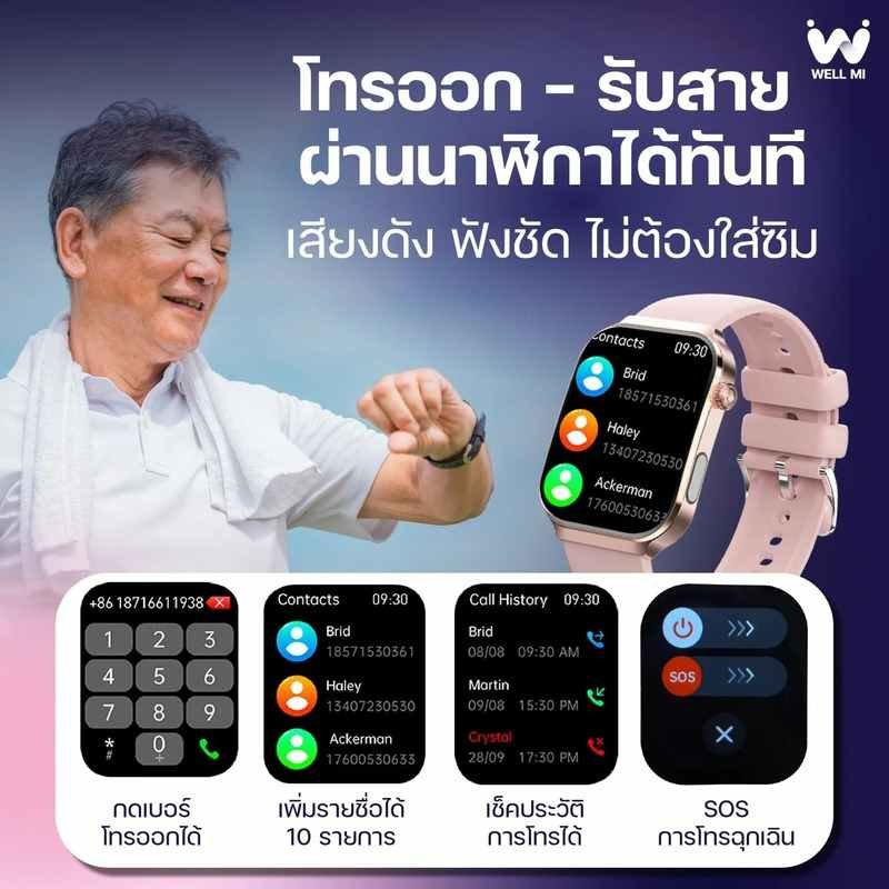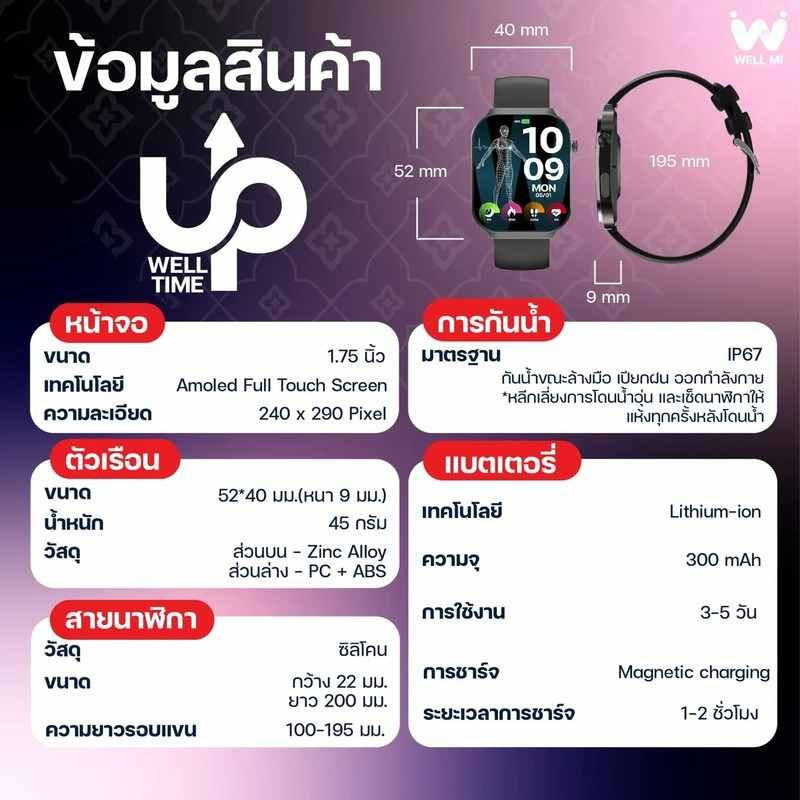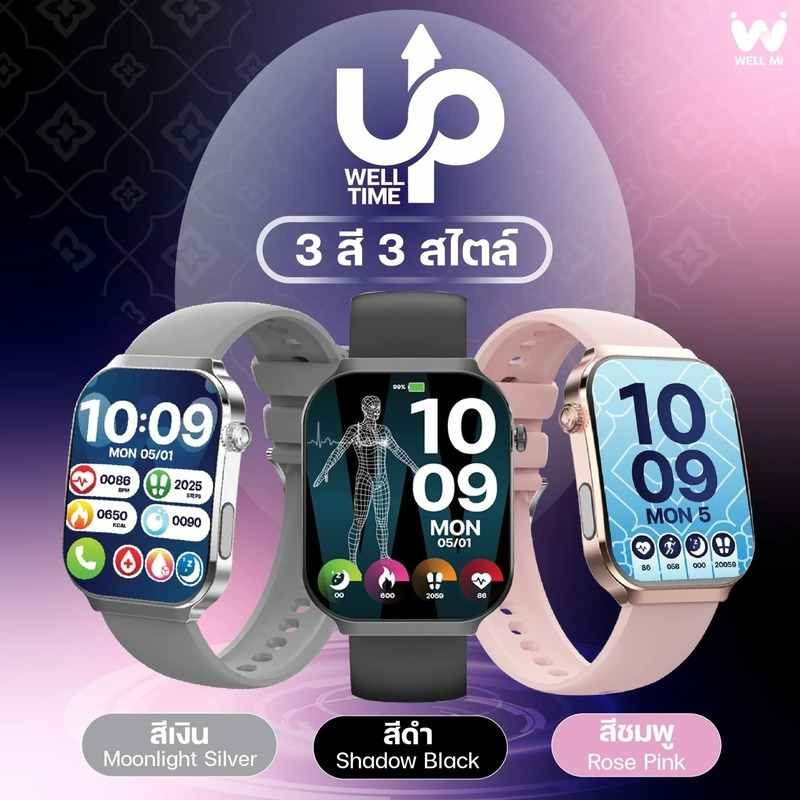 Well Time Up นาฬิกาสุขภาพรุ่นใหม่ล่าสุดแห่งปี 2025 ที่นำเทคโนโลยี AI อัจฉริยะเข้ามาประมวลผลร่วมกับเซนเซอร์ PPG ที่ใช้ในการเช็คค่าสุขภาพต่างๆ มีฟังก์ชันสุขภาพรวมแล้วกว่า 20 ฟังก์ชัน มีมาให้ครบในเรือนเดียว ทั้งความดันฯ น้ำตาล อัตราการเต้นหัวใจ ออกซิเจน ความเครียด อัตราการผันแปรหัวใจ เช็คคุณภาพการนอน และมีโหมดออกกำลังกายมากถึง 100 ชนิดกีฬา อีกทั้งยังสามารถโทรออก-รับสายผ่านนาฬิกาได้เลย แจ้งเตือนข้อความแอปพลิเคชันต่างๆบนหน้าจอนาฬิกา เหมาะมากสำหรับผู้ที่ต้องการเริ่มต้นดูแลสุขภาพ สวมใส่ได้ทุกเพศ ทุกวัย
