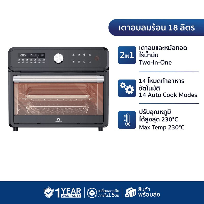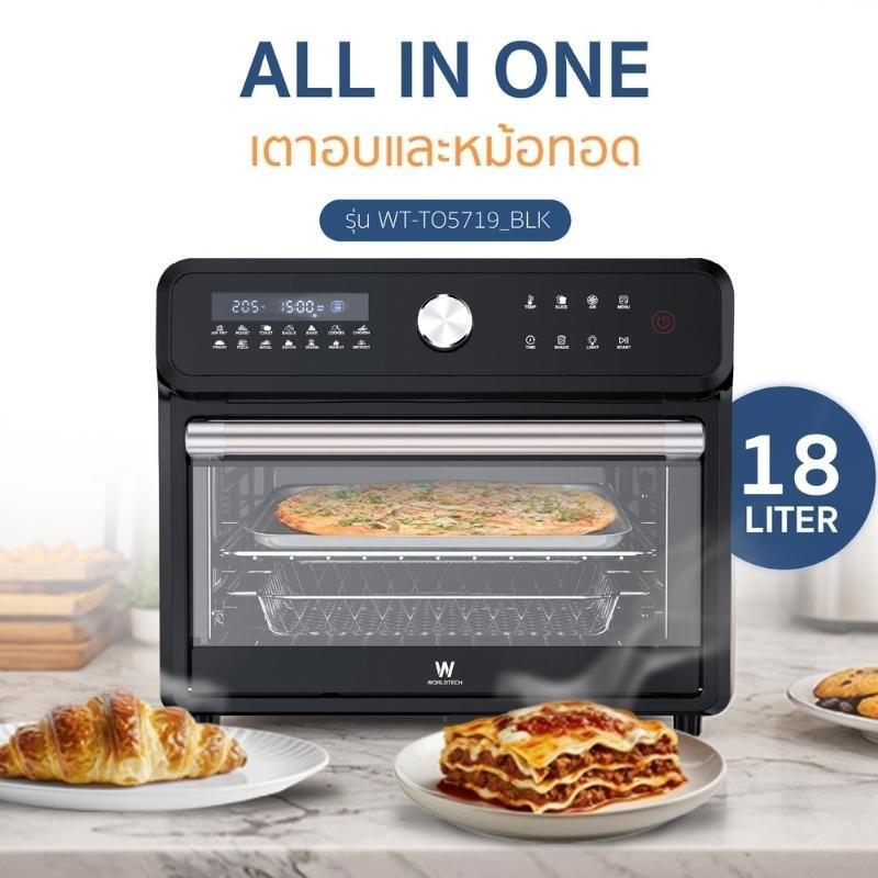 WORLDTECH เตาอบไฟฟ้าลมร้อนความจุขนาด 18 ลิตร รุ่น WT-TO5719 อุปกรณ์คู่ใจสำหรับทุกครัวเรือน รองรับฟังก์ชันการทำอาหารหลากหลาย ทั้งอบ ย่าง ทอดลมร้อน และอบแห้ง ครบเครื่องด้วยโหมดอัจฉริยะถึง 14 โหมด พร้อมจอ LED และระบบดิจิทัลที่ช่วยให้การใช้งานง่ายดาย ออกแบบมาเพื่อการใช้งานทั้งในครัวบ้านและธุรกิจอาหารขนาดเล็ก มาพร้อมกับคุณสมบัติที่ตอบโจทย์สายทำครัวอย่างเหนือระดับ