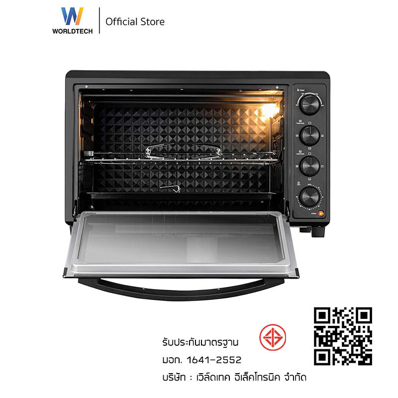 Worldtech เตาอบไฟฟ้า 60 ลิตร รุ่น WT-OV60L_BLKDG เตาอบไฟบนล่าง ปรับอุณหภูมิ 250°C กระจกนิรภัย 2 ชั้น เคลือบ Non-Stick