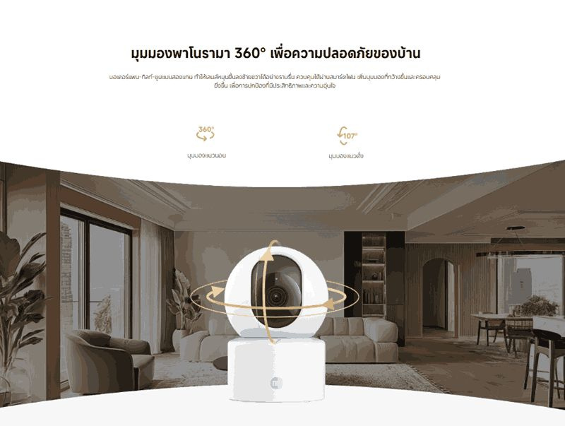 ปรับมุมกล้องได้ทั้งแนวตั้ง (107องศา) และแนวนอน (360องศา)