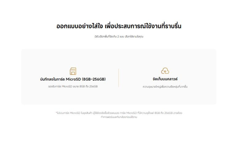 รองรับ MicroSD Card: 8-256 GB และ Cloud storage