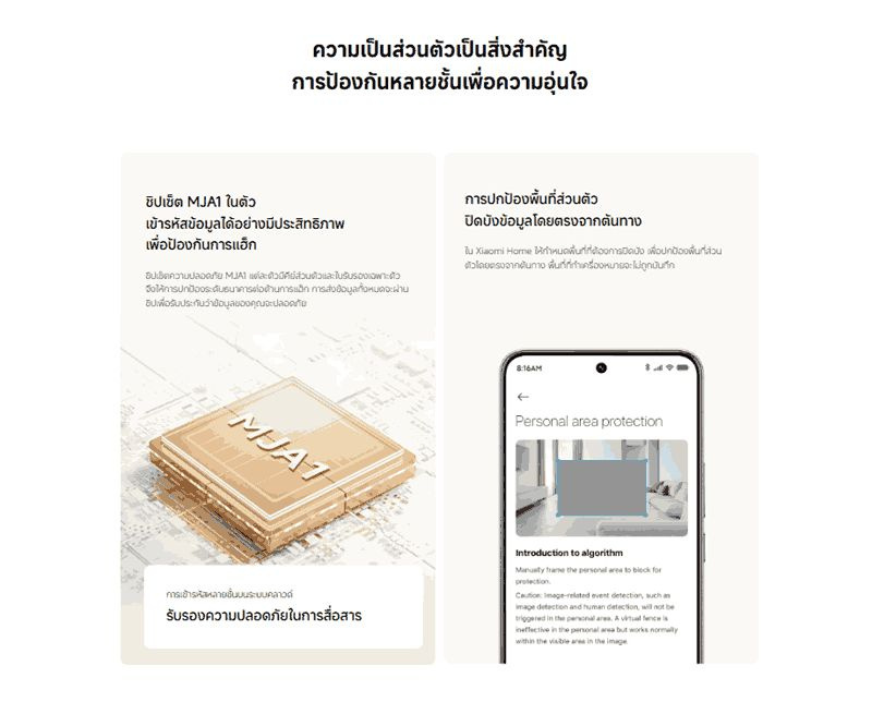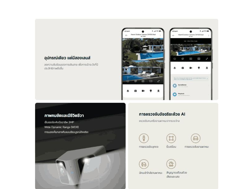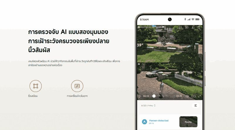 มี AI Human Detection ตรวจจับบุคคลได้ และตั้งค่าให้แจ้งเตือนผ่านแอพ Mi Home