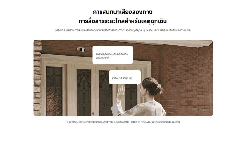 สามารถฟังเสียงจากบริเวณที่ติดตั้งกล้องและพูดโต้ตอบกับคนที่หน้ากล้องได้ผ่านแอป Mi Home