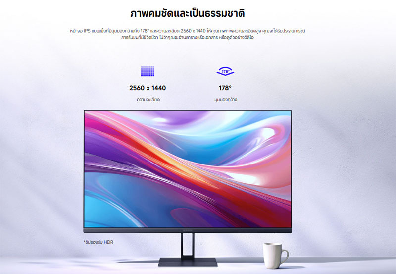 หน้าจอ IPS ขนาด 27 นิ้ว มุมมองกว้าง 178 องศา ระดับ HD