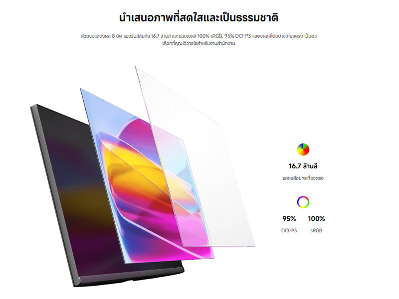 95 เปอร์เซ็น DCI-P3 100 เปอร์เซ็น sRGB การครอบคลุมขอบเขตสีแบบกว้างสองมาตรฐาน