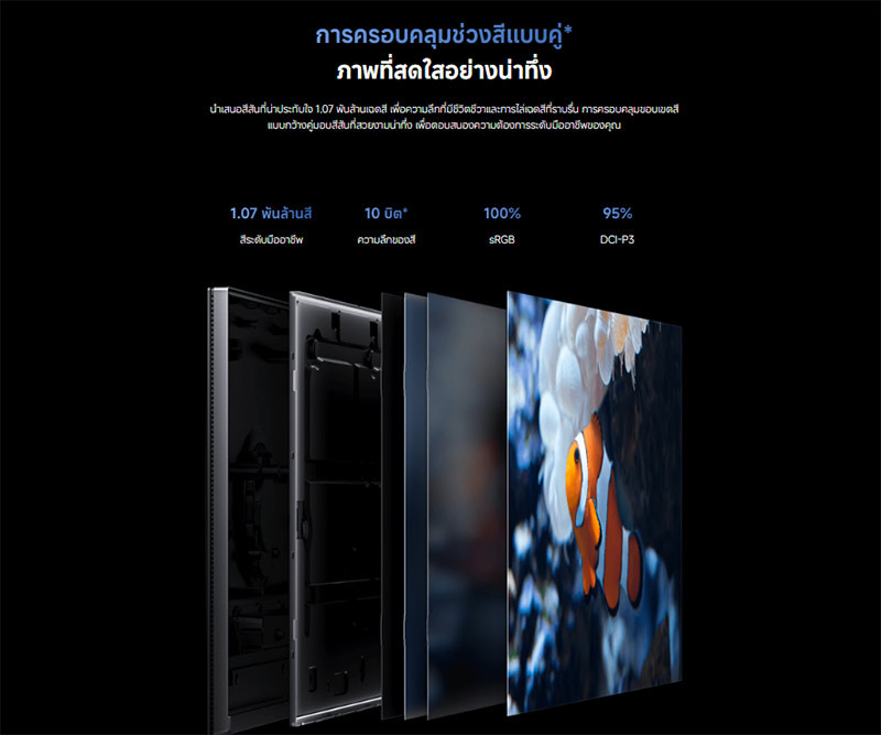 95 เปอร์เซ็น DCI-P3 100เปอร์เซ็น sRGB การครอบคลุมขอบเขตสีแบบกว้างสองมาตรฐาน