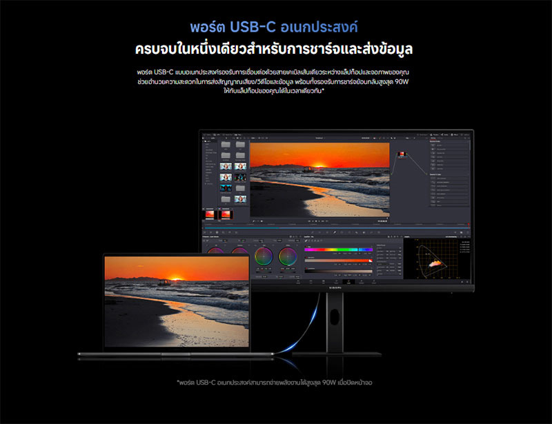 พอร์ต USB-C อเนกประสงค์ รองรับการชาร์จย้อนสูงสุด 90W