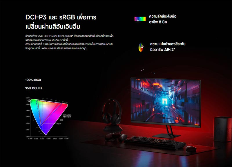 ช่วงสีกว้าง 95 เปอร์เซ็น DCI-P3 และ 100เปอร์เซ็น sRGB