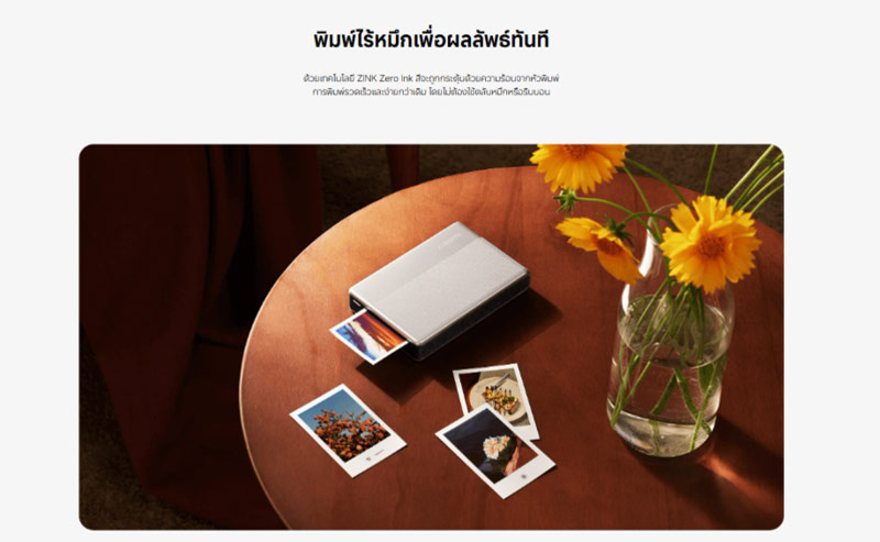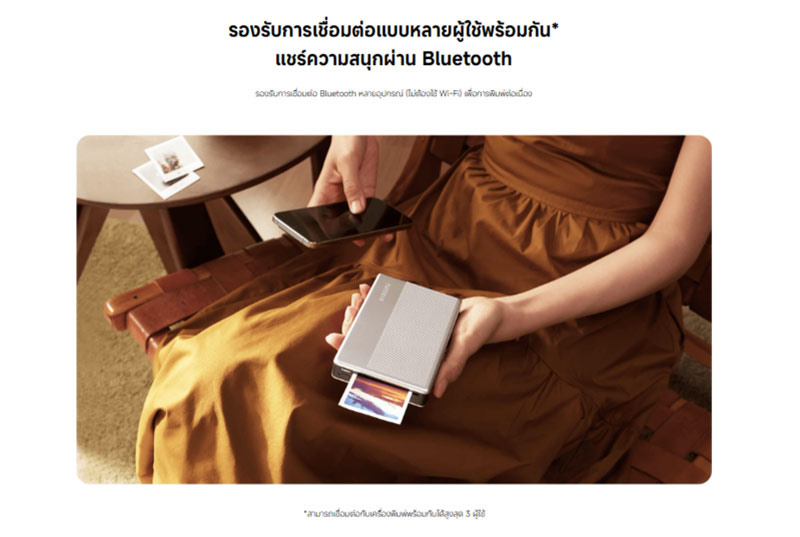 - สามารถพิมพ์ภาพได้ประมาณ 20 ภาพต่อการชาร์จหนึ่งครั้ง