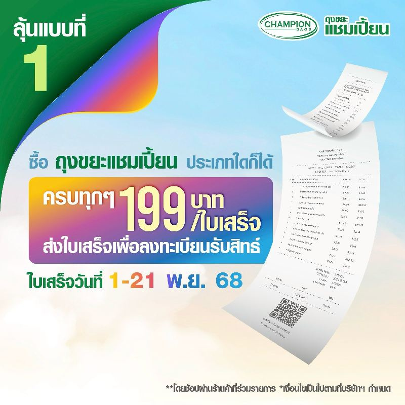 **ระยะเวลากิจกรรม วันที่ 1-21 พฤศจิกายน 2568 / จับสลากผู้โชคดี วันที่ 26 พฤศจิกายน 2568 เวลา 14.00 น. / ประกาศผู้โชคดี วันที่ 27 พฤศจิกายน 2568 เวลา 18.00 น. ทาง Fackbook: championbagsofficial