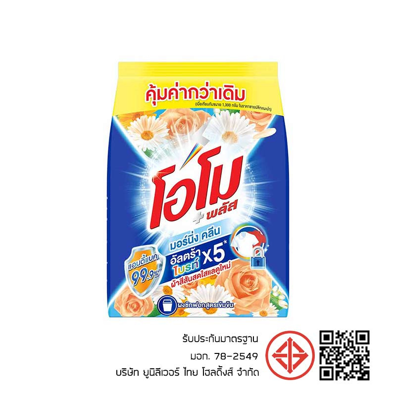 โอโม (OMO) คิดค้นผลิตภัณฑ์ทำความสะอาดเสื้อผ้าที่ช่วยเสริมความมั่นใจให้คุณ ช่วยให้คุณมั่นใจและแสดงบุคลิกภาพที่ดีในตัวคุณ ด้วยเสื้อผ้าที่ขาวสะอาด สว่างไสวและหอมยาวนาน โอโมพลัส ผงซักฟอก สูตรมอร์นิ่งบลูม ผงซักฟอกโอโมพลัสที่ช่วยเพิ่มพลังขจัดคราบสกปรกและลอกความหมองคืนความขาวเจิดจ้าให้กับผ้าทุกประเภท ทั้งผ้าใยธรรมชาติและผ้าใยสังเคราะห์ ให้เสื้อผ้าขาวแบบโอโมมั่นใจ 100% ซักแค่ 1 ครั้ง ขาวสว่าง สีสันสดใส ผ้าสะอาดกลิ่นหอมละมุน ผ้าหอมนาน ไร้กลิ่นอับชื้น สำหรับซักมือและเครื่องฝาบน ใช้ได้ทั้งผ้าขาวและผ้าสี สามารถสั่งซื้อได้แล้ว ผ่านทางเว็บไซต์ของเรา สะดวกสบาย ในราคาที่จับต้องได้ ช้อปเลย!