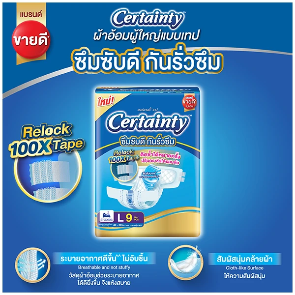 เซอร์เทนตี้ ผ้าอ้อมผู้ใหญ่ แบบเทป แพ็กกลาง (มีไซส์ M-L)