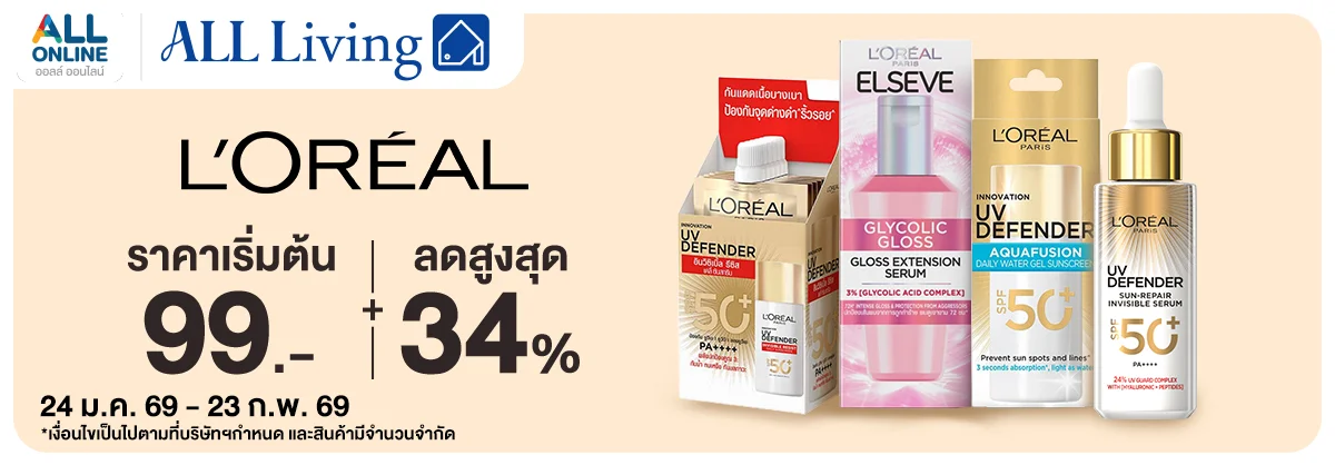 L'Oréal Paris เชื่อว่าทุกคนมีความสวยในแบบของตัวเอง เราจึงมุ่งมั่นที่จะสร้างสรรค์ผลิตภัณฑ์ที่ตอบโจทย์ความต้องการและความหลากหลายของผู้หญิงทั่วโลก ไม่ว่าคุณจะเป็นใคร หรือมีสไตล์เป็นอย่างไร L'Oréalก็มีผลิตภัณฑ์ที่เหมาะสมกับคุณ หาซื้อได้แล้วที่ All Online