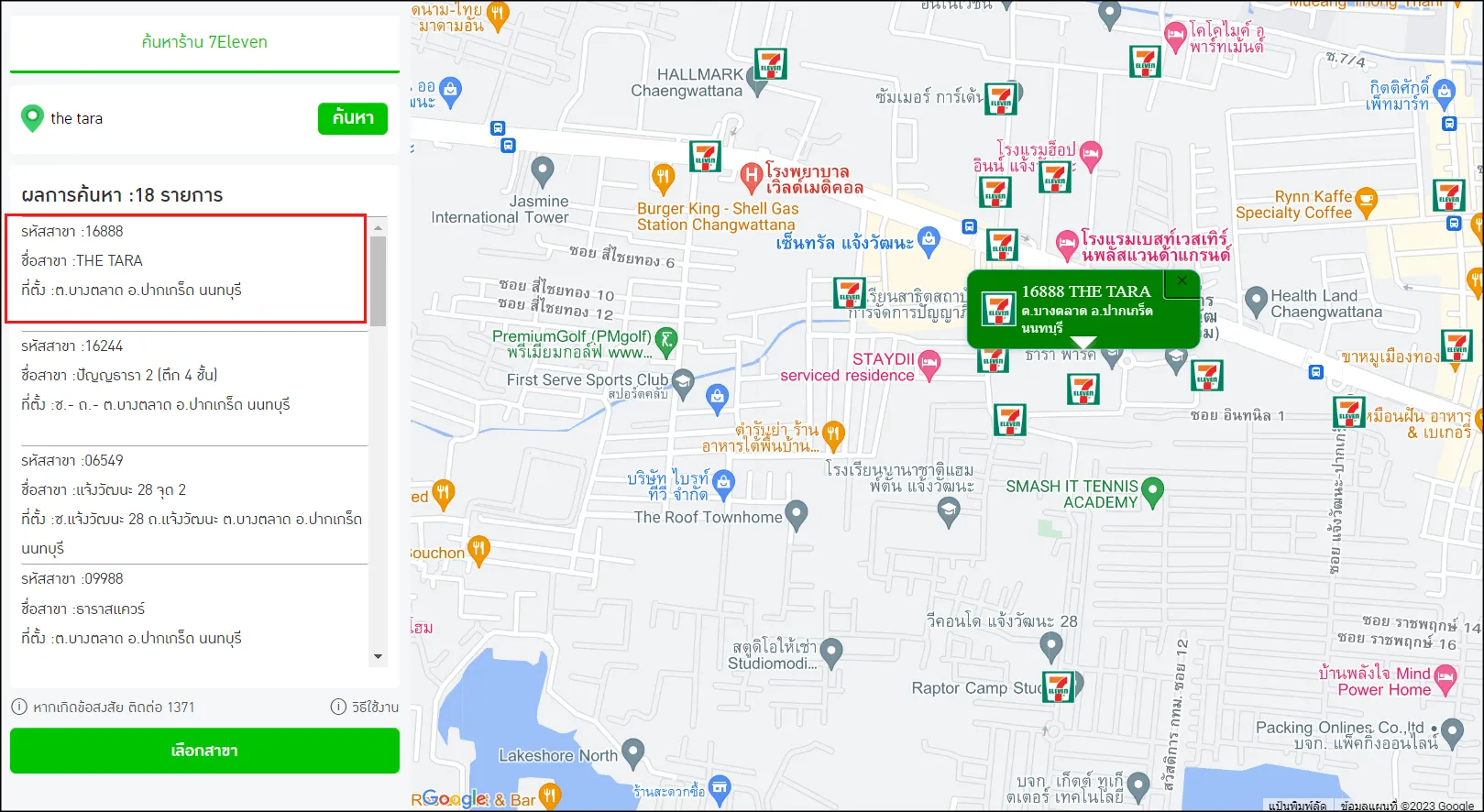 เมื่อทำการค้นหาจะมีรูปแผนที่ขึ้นมา ซึ่งสามารถดูจากแผนที่ได้โดยตรง หรือพิมพ์ชื่อสาขา / ที่ตั้ง / รหัสสาขา เพียงเท่านี้ก็จะได้รหัสร้านที่เราค้นหา